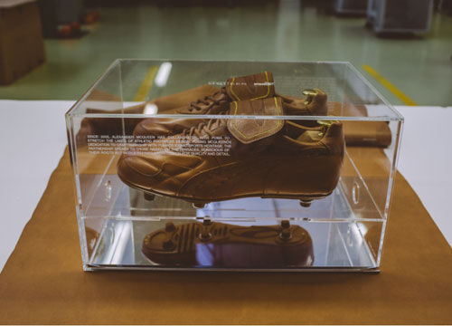 PUMA King by Alexander McQueen的两款足球鞋以高品质材质和手工制造,鞋身保留了原始版PUMA King的特色,以时尚重新演绎经典,令人惊艳。这项顶级的跨界合作鞋款全球仅100双,鞋后跟的序号凸显了这两款鞋款限量的非凡意义。此外,每一双鞋都随赠一份纪念册,充分展示了PUMA足球历史上最负盛名的鞋款所具有的丰富历史积淀。
