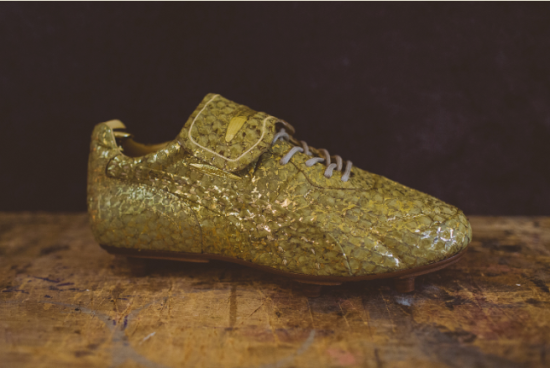第一款PUMA King by Alexander McQueen全球限量30双,鞋身采用独特的鱼皮,经过鞣革工艺加工并以全金色手工饰面,让人不禁联想世界杯期间表彰进球数最多球员的“金靴奖”奖杯。
